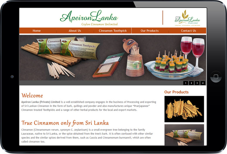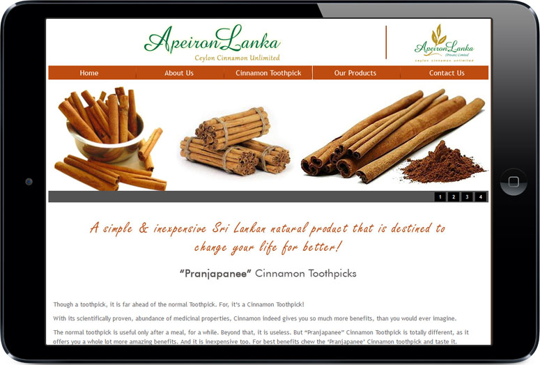 It is all about cinnamon here. Apeiron Lanka has established itself as a Cinnamon Exporting Sri Lankan company. Their website was meant to boost their business and let the world know their unique products like cinnamon toothpick.